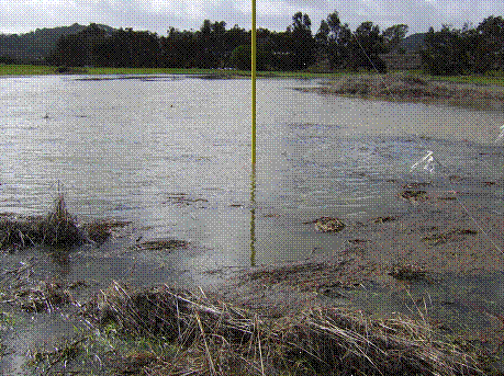 The building site floods regularly during storm events and high tides. The photos below show the building site in a flooded state on December 31, 2005. Additional photos are available at www.gallinascreek.org